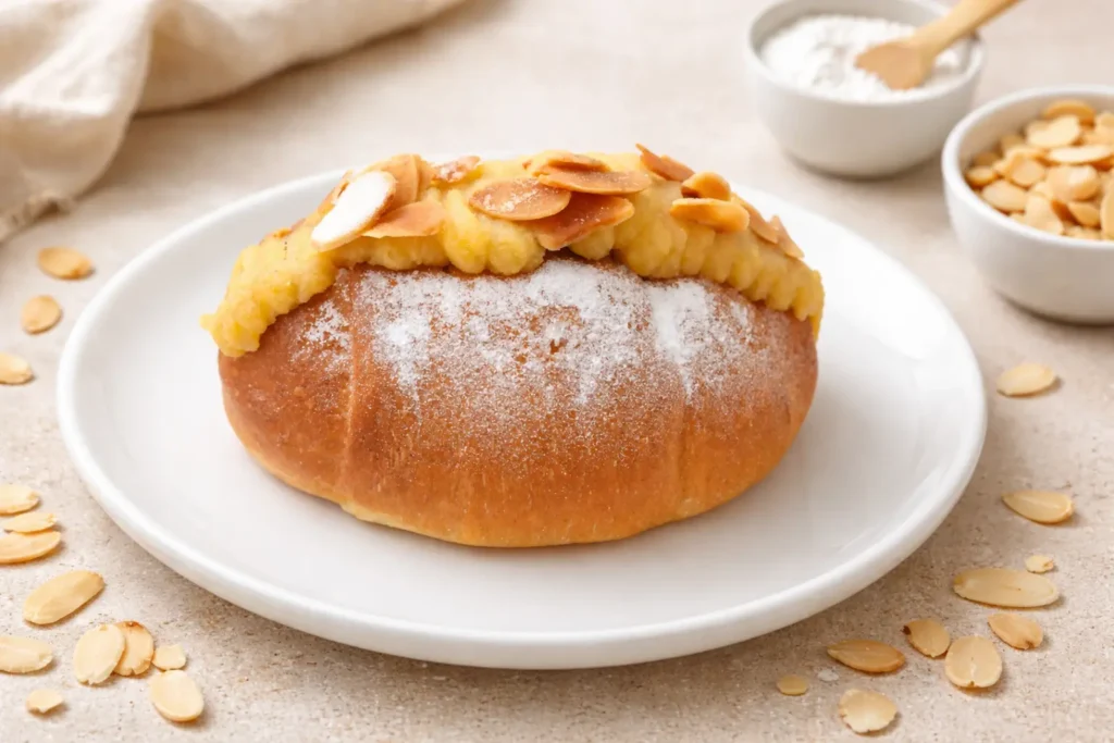 Almond Salt Bread Bunbee menghadirkan sentuhan manis lembut dari almond yang seimbang dengan karakter gurih dari adonan salt bread. Aneka salt bread ini memiliki aroma kacang yang halus, diperkuat dengan taburan almond slice yang memberikan tekstur renyah di setiap gigitan.
